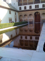 Here we are sitting outside waiting for our scheduled time to go inside the Alhambra.